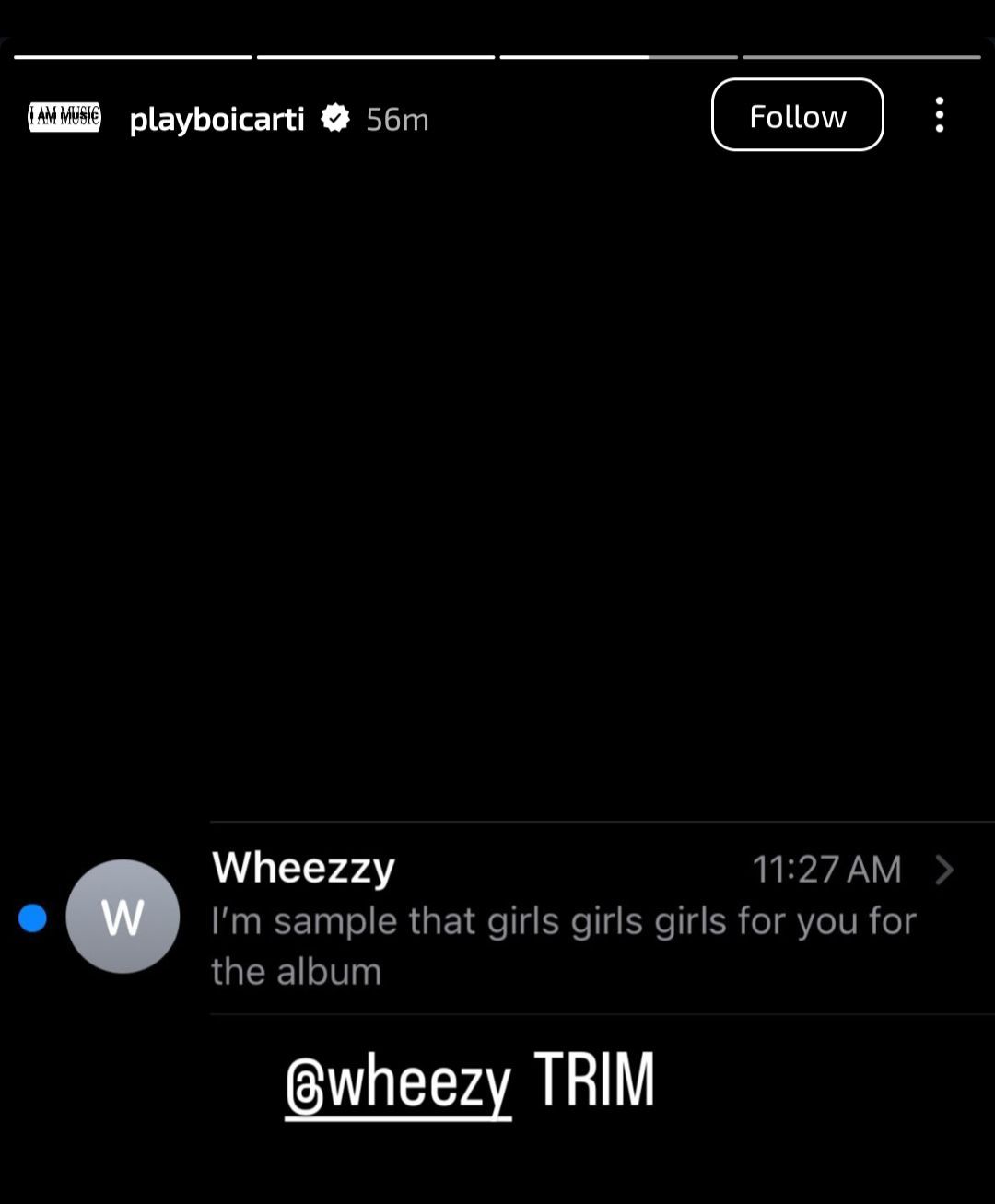 But after Playboi Carti's story with the text message from Wheezy blew up with fans commenting about the delay, Carti posted another story, clarifying that the text shown in the story was connected to something else altogether and that the album is done. With that, some fans now think that there might be 2 separate albums, whereas some still don't believe even one exists.