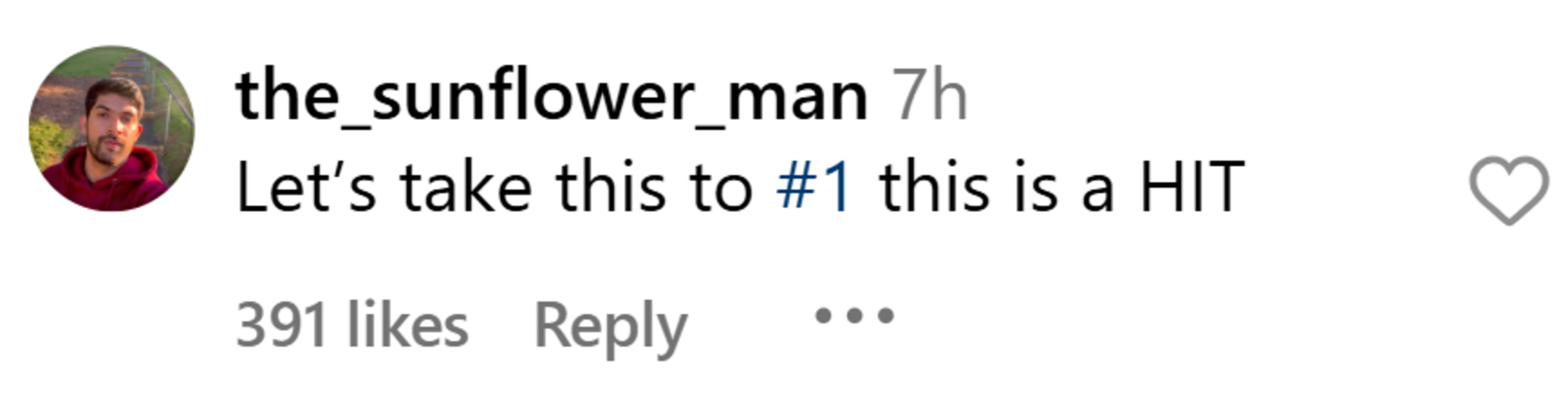 "Let’s take this to #1 this is a HIT," another user, @the_sunflower_man, posted.
