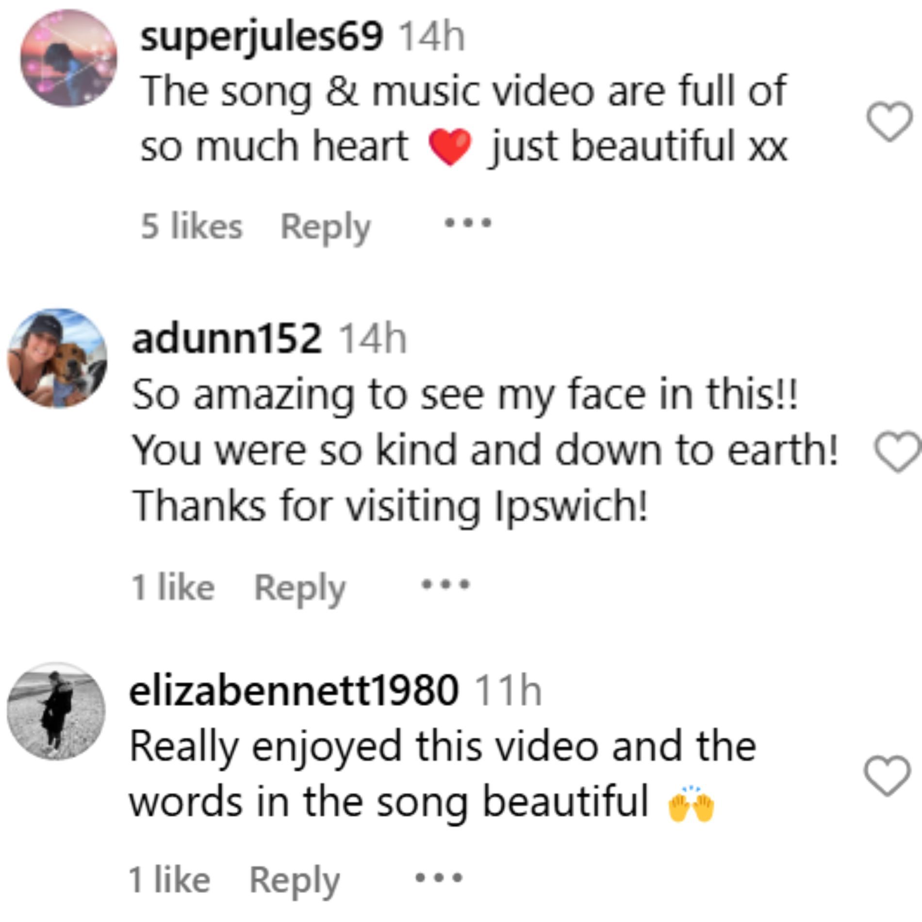 "Really enjoyed this video and the words in the song beautiful 🙌," one more user, @elizabennett1980, posted.