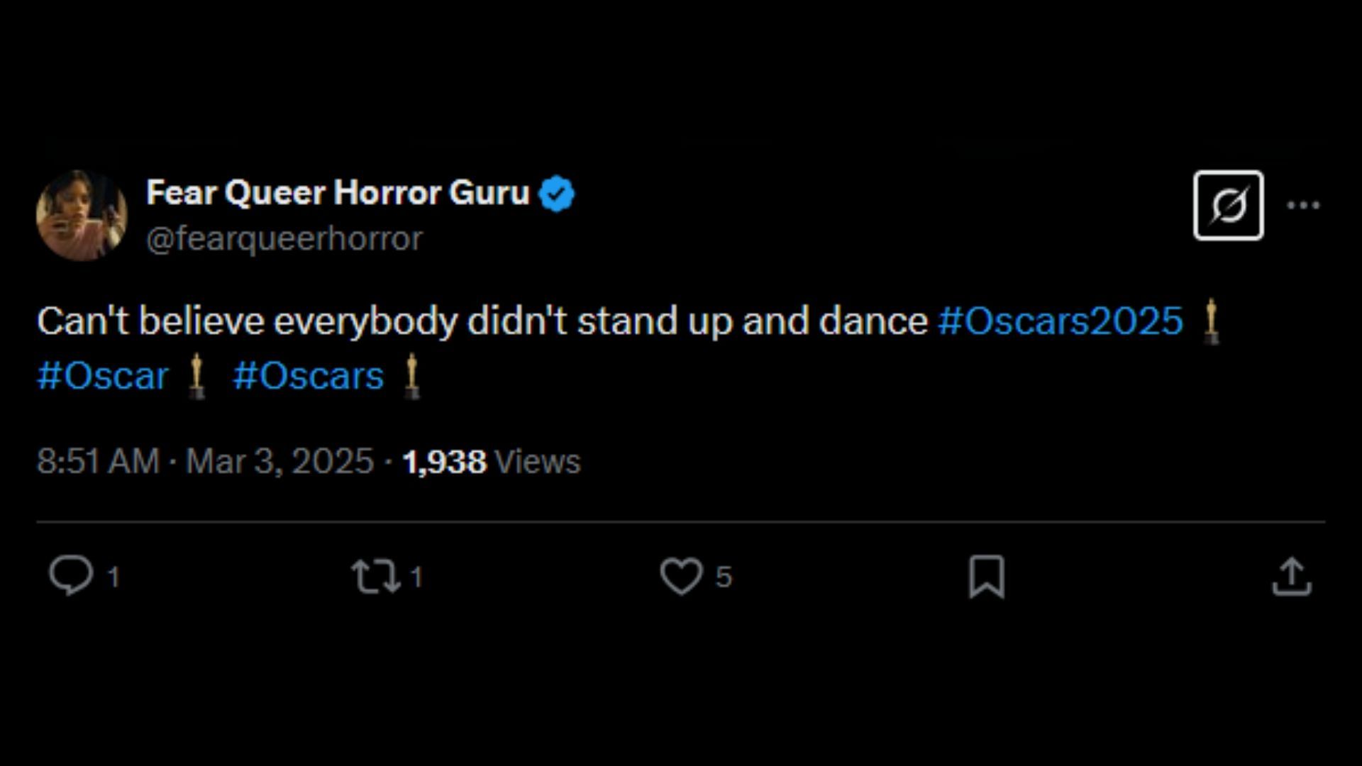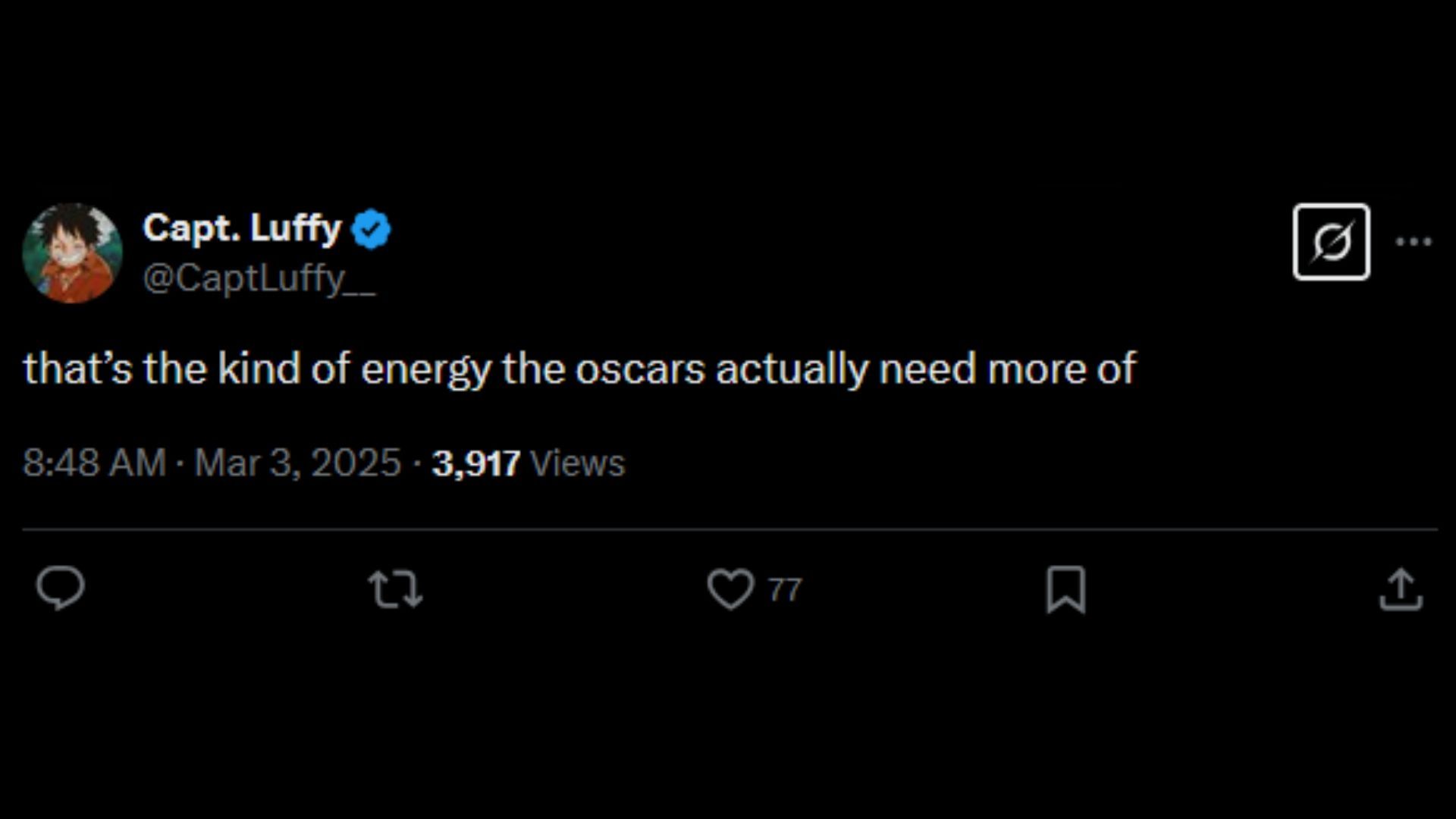One person commented: "that’s the kind of energy the oscars actually need more of"