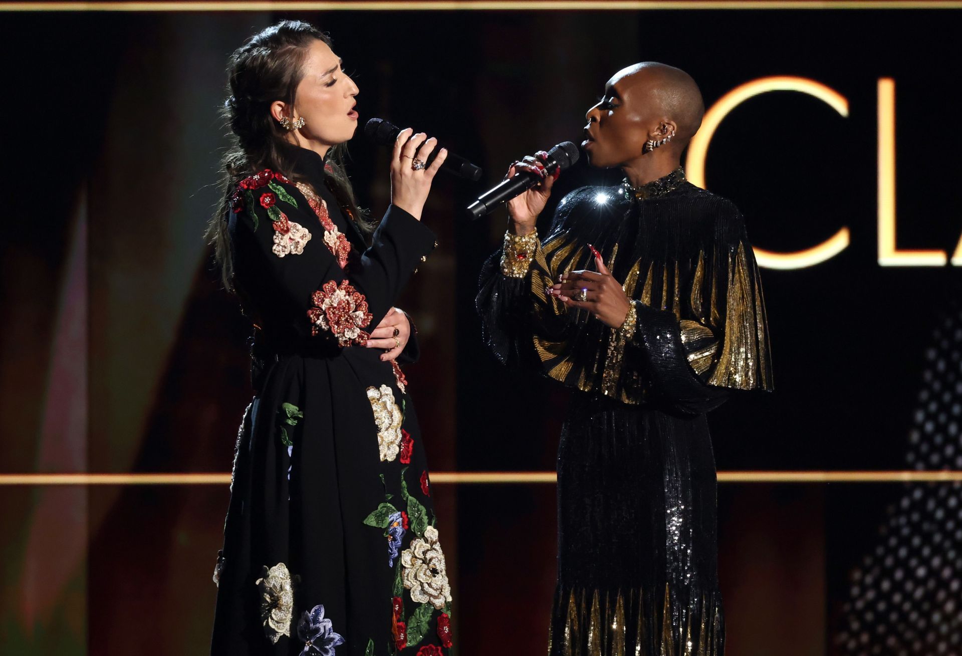 Cynthia Erivo took a break from hosting to sing with Sara Bareilles. They sang Tomorrow, a well-known song from the beloved show Annie. Their voices mixed with true warmth and heart, making a strong tribute for friends from their circle who had died in the last year.