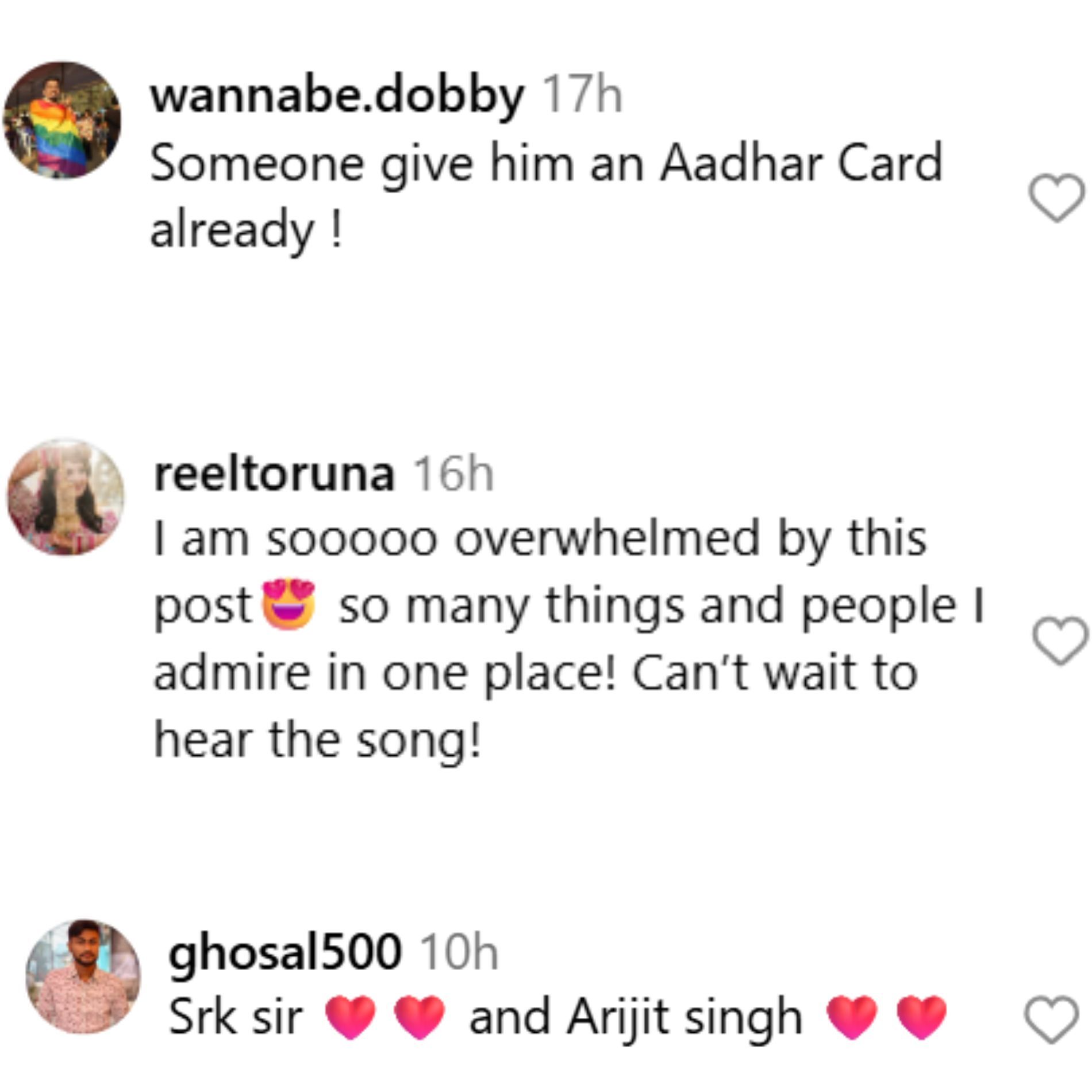 "Srk sir ❤️❤️ and Arijit singh ❤️❤️," another user, @ghosal500, added.
