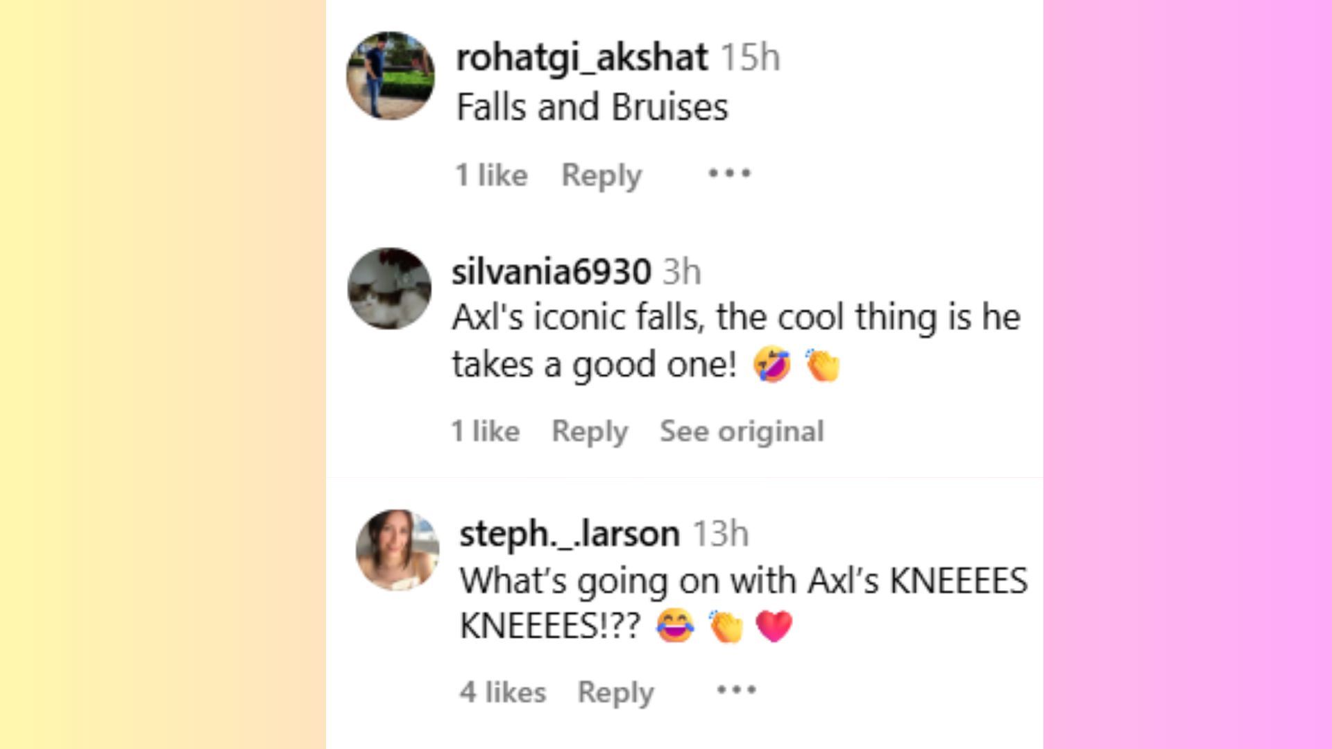 "Axl's iconic falls, the cool thing is he takes a good one!" remarked a fan