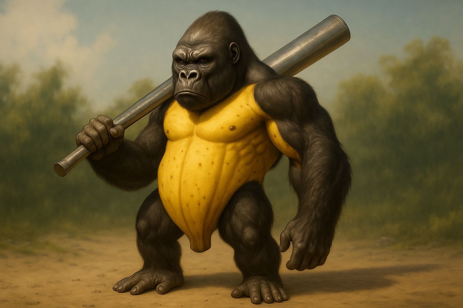 Sahur retaliated with glowing attacks but Gorillardo tanked every single hit. In a final move Gorillardo grabbed the Mazzuola and shattered Sahur’s wooden body in two. Banana pulp and wooden fragments flew across the battlefield. No one celebrated because the fight tore through space and left reality barely holding itself together.
