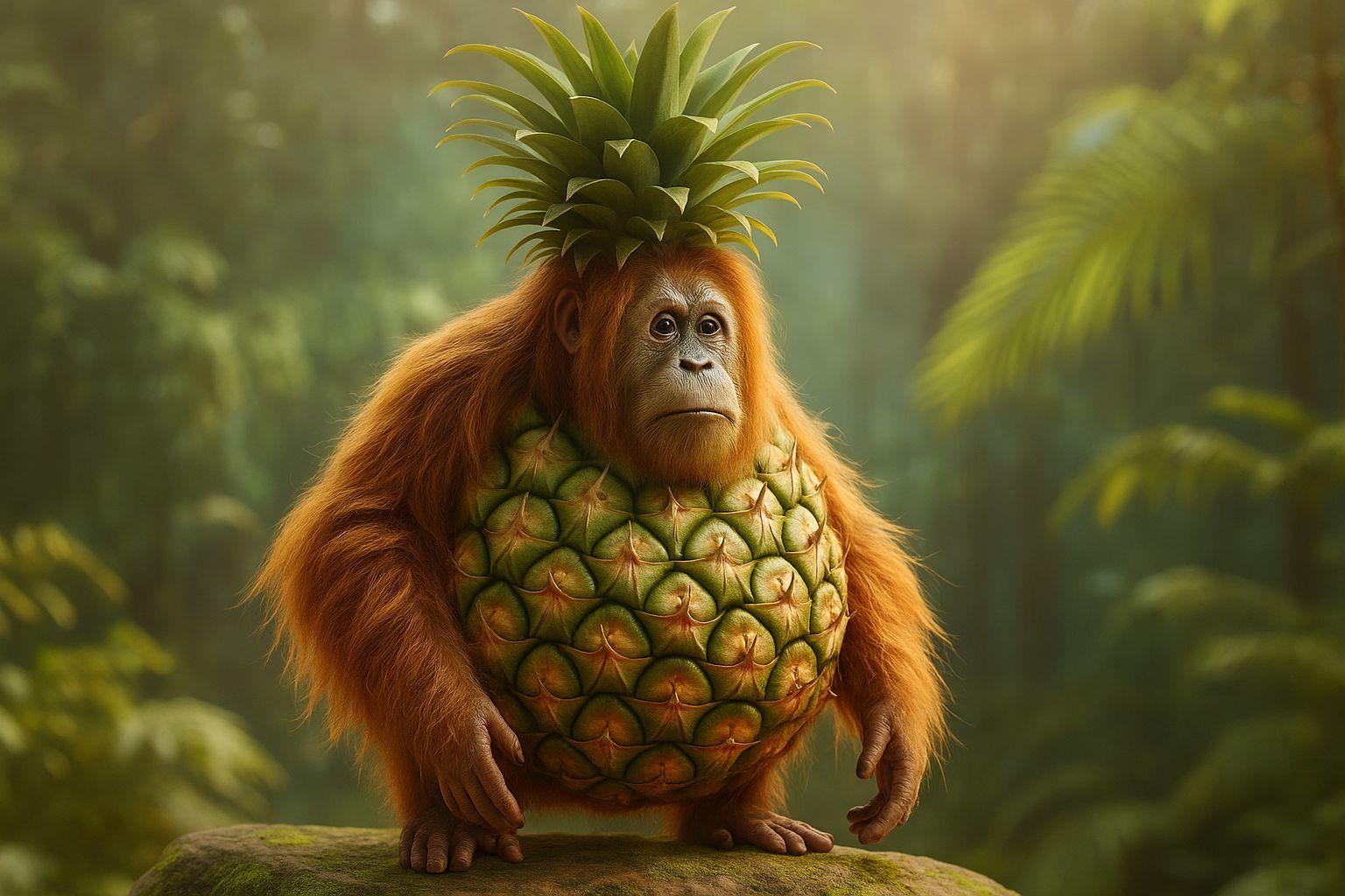Orangutini Ananasini is a creature that combines the strength of an orangutan with the appearance of a ripe pineapple. His outer shell is rough and spiked, and his core contains layers of stored energy that activate during fights. He first showed up during the potassium surge caused by the Bananaccia sul Fosso rupture. He moves with purpose and strikes without hesitation.