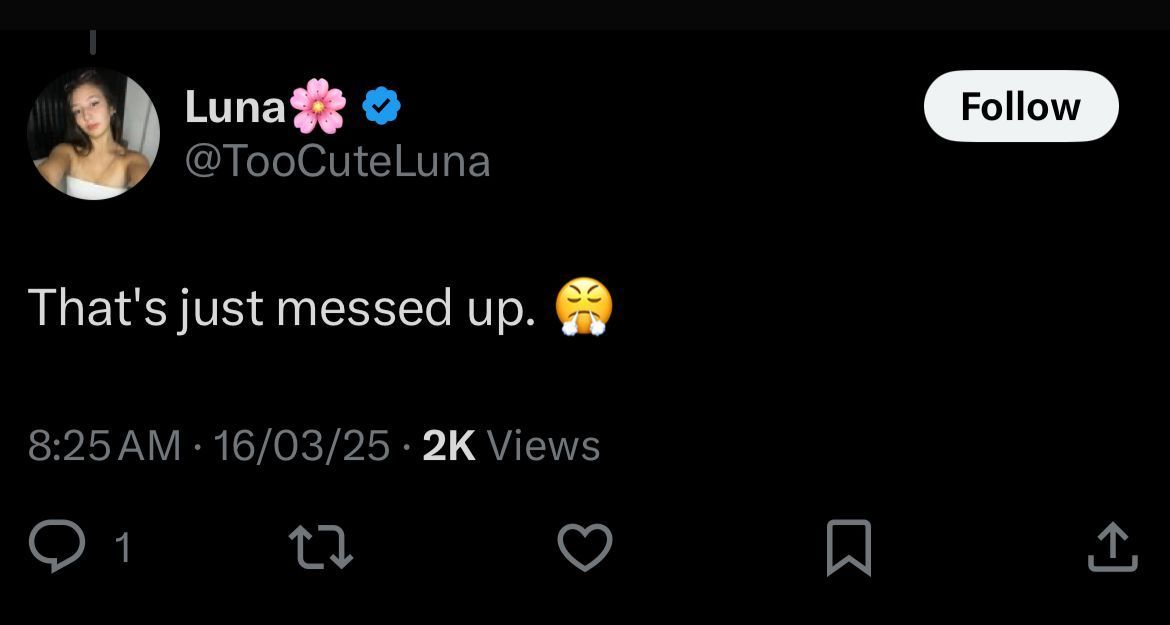 User @TooCuteLuna commented on X saying,