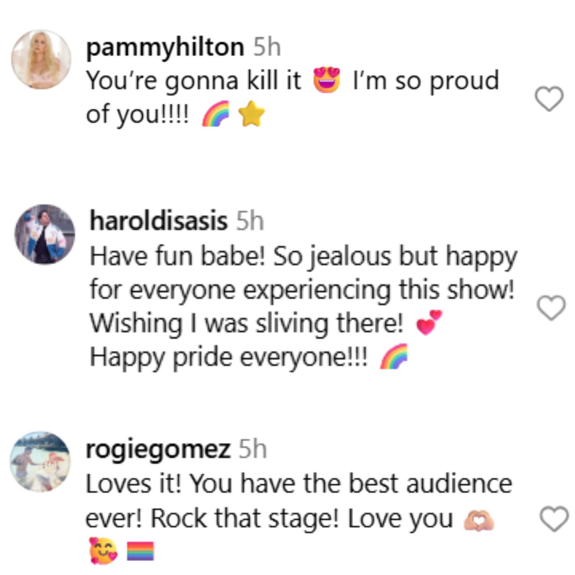 "Loves it! You have the best audience ever! Rock that stage! Love you 🫶🏼🥰🏳️🌈," one more user, @rogiegomez, added.