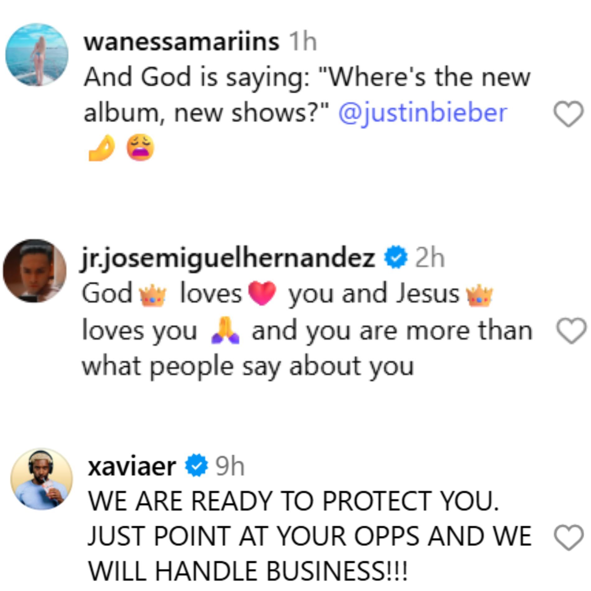 "And God is saying: "Where's the new album, new shows?" @justinbieber 🤌😩," a fan, @wanessamariins, commented.