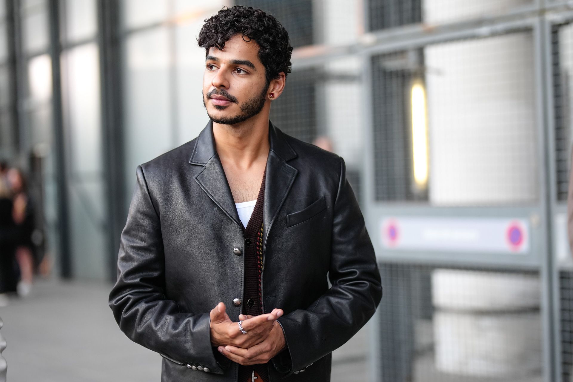 Bollywood actor Ishaan Khatter was also invited to the Louis Vuitton menswear show. Ishaan went for a smart casual look with a statement black leather blazer. He layered the blazer with a brown printed cardigan, white tank, and dark blue bootcut jeans. A chain was attached to his hip.