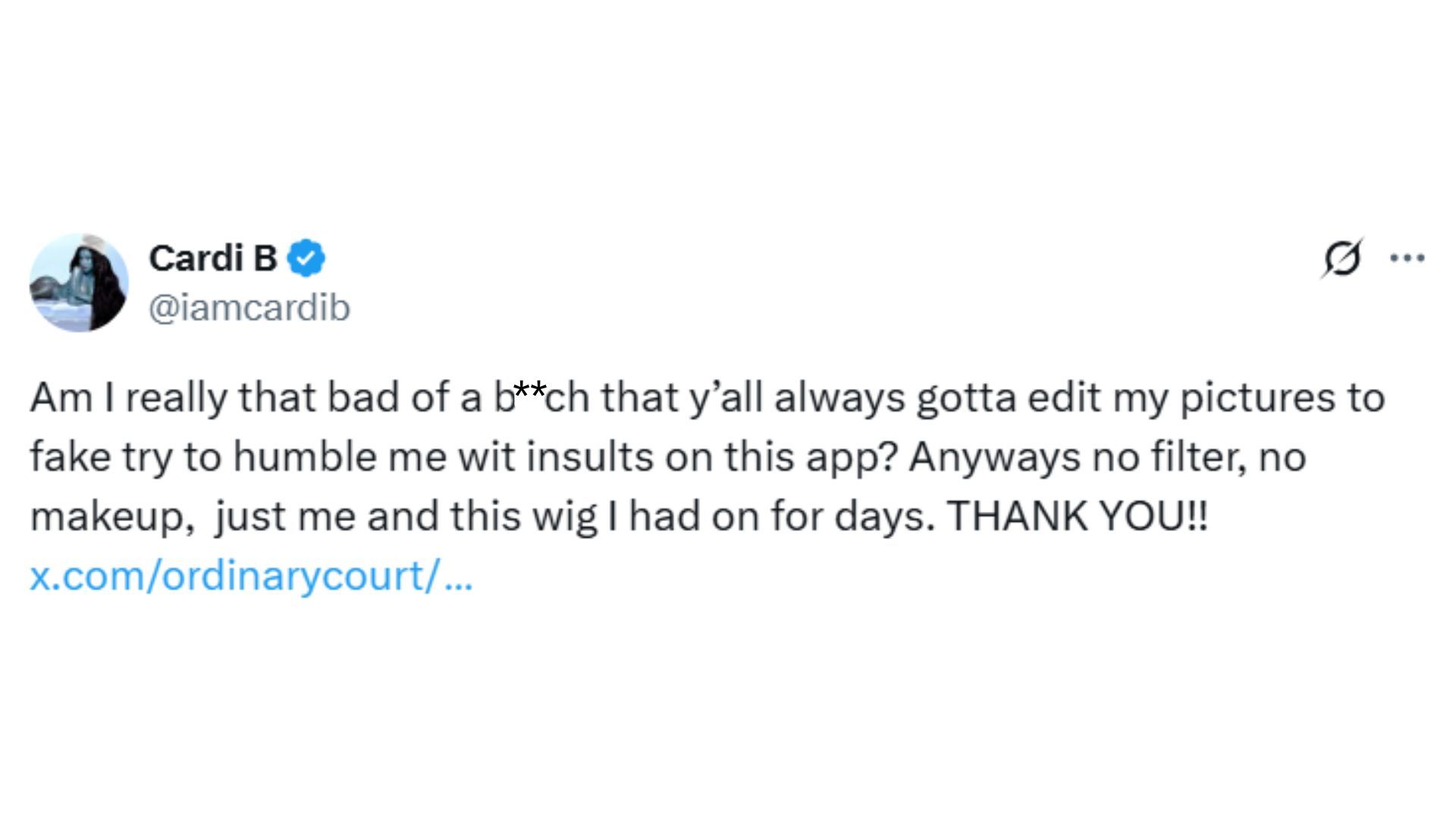 However, the recent video was not far from online criticisms. A social media user (@imcharm_) reshared Cardi B’s post on X, writing: