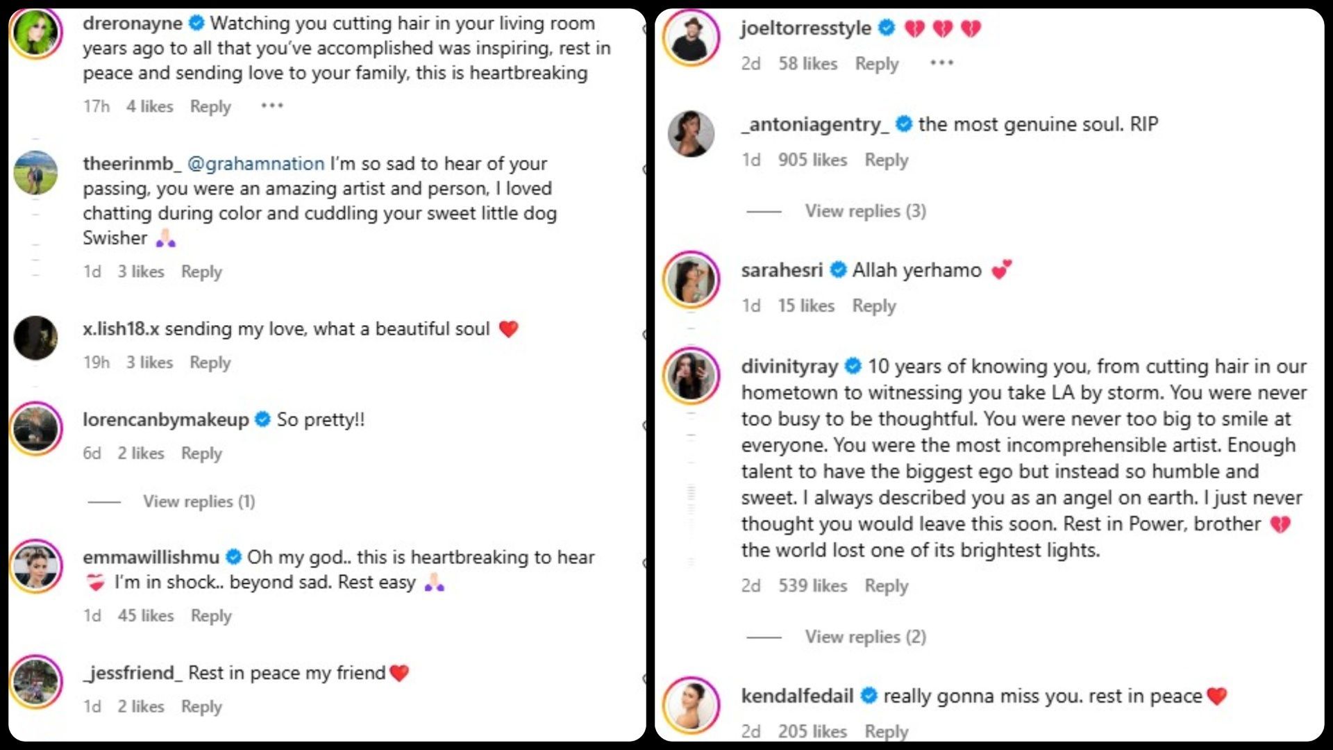 Shortly before his demise, Graham had posted about his work with Wicked star Marrisa Bode. After his unexpected death, many flooded his recent Instagram post with tributes and condolences. TikToker, influencer, and hairstylist Divinity Ray wrote down an emotional message for Graham Nation,