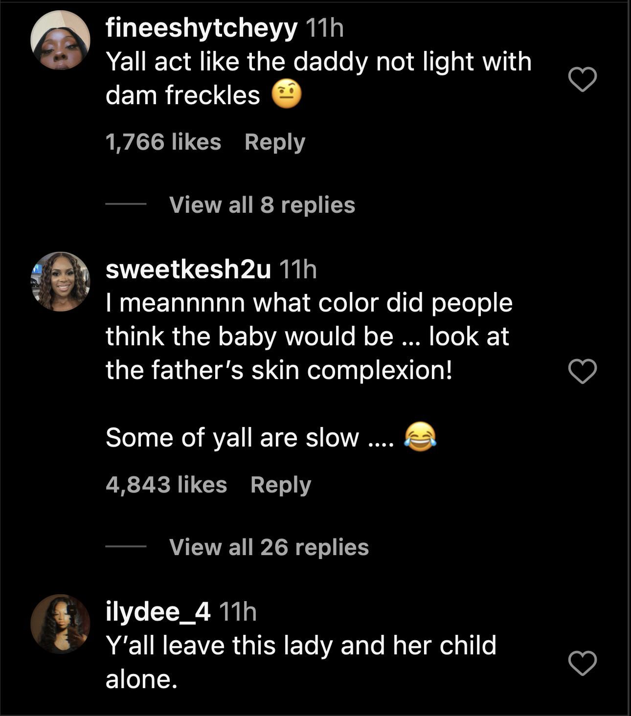 "I meannnnn what color did people think the baby would be … look at the father’s skin complexion! Some of yall are slow …. 😂," another pointed out.