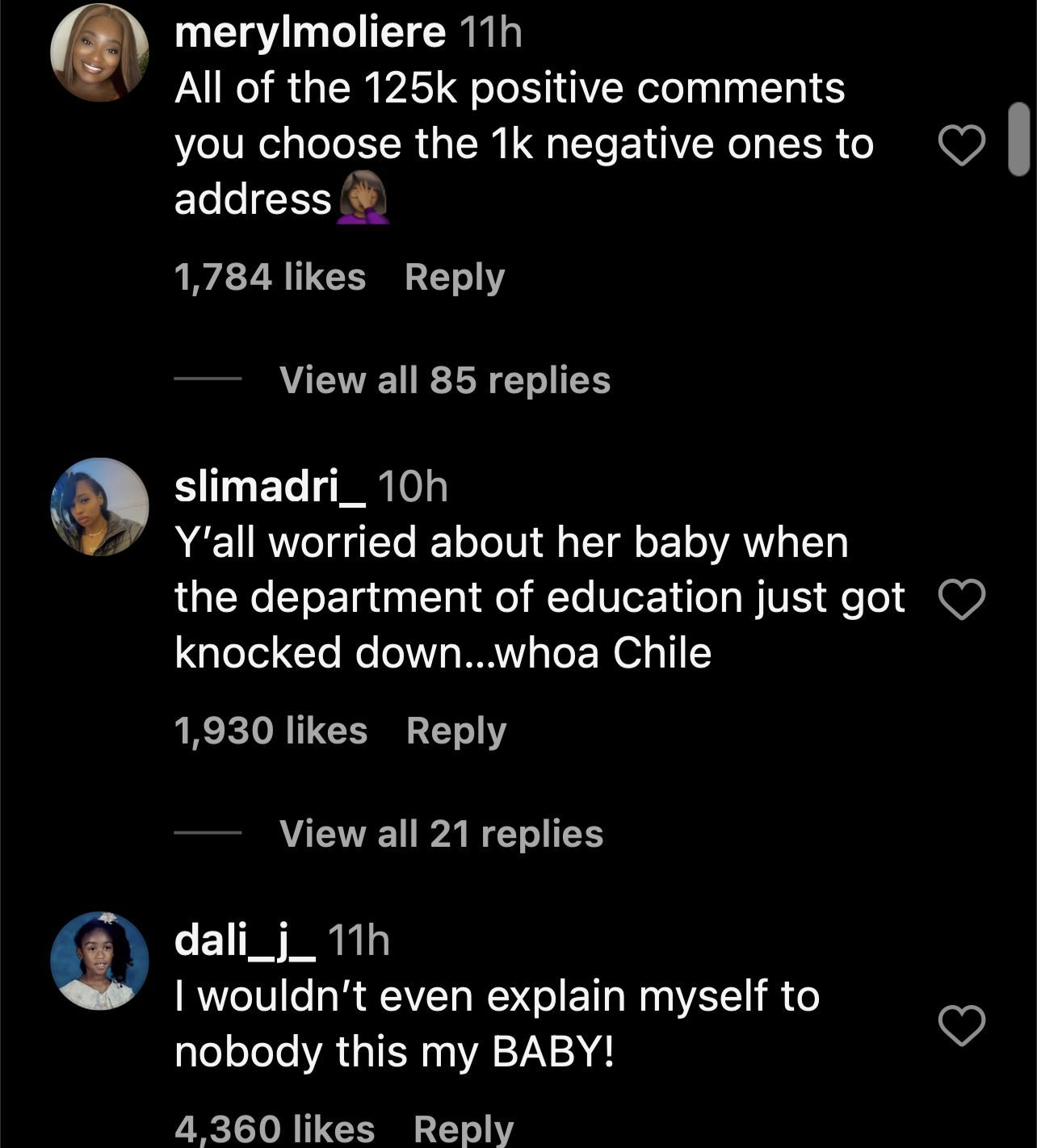 "Y’all worried about her baby when the department of education just got knocked down…whoa Chile," another pointed out.