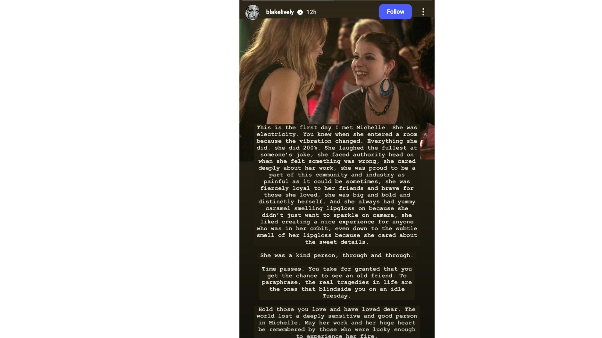 Blake Lively, who was Michelle Trachtenberg's co-star in the hit series, the Gossip Girl, also composed a touching tribute that she posted on her Instagram Stories.