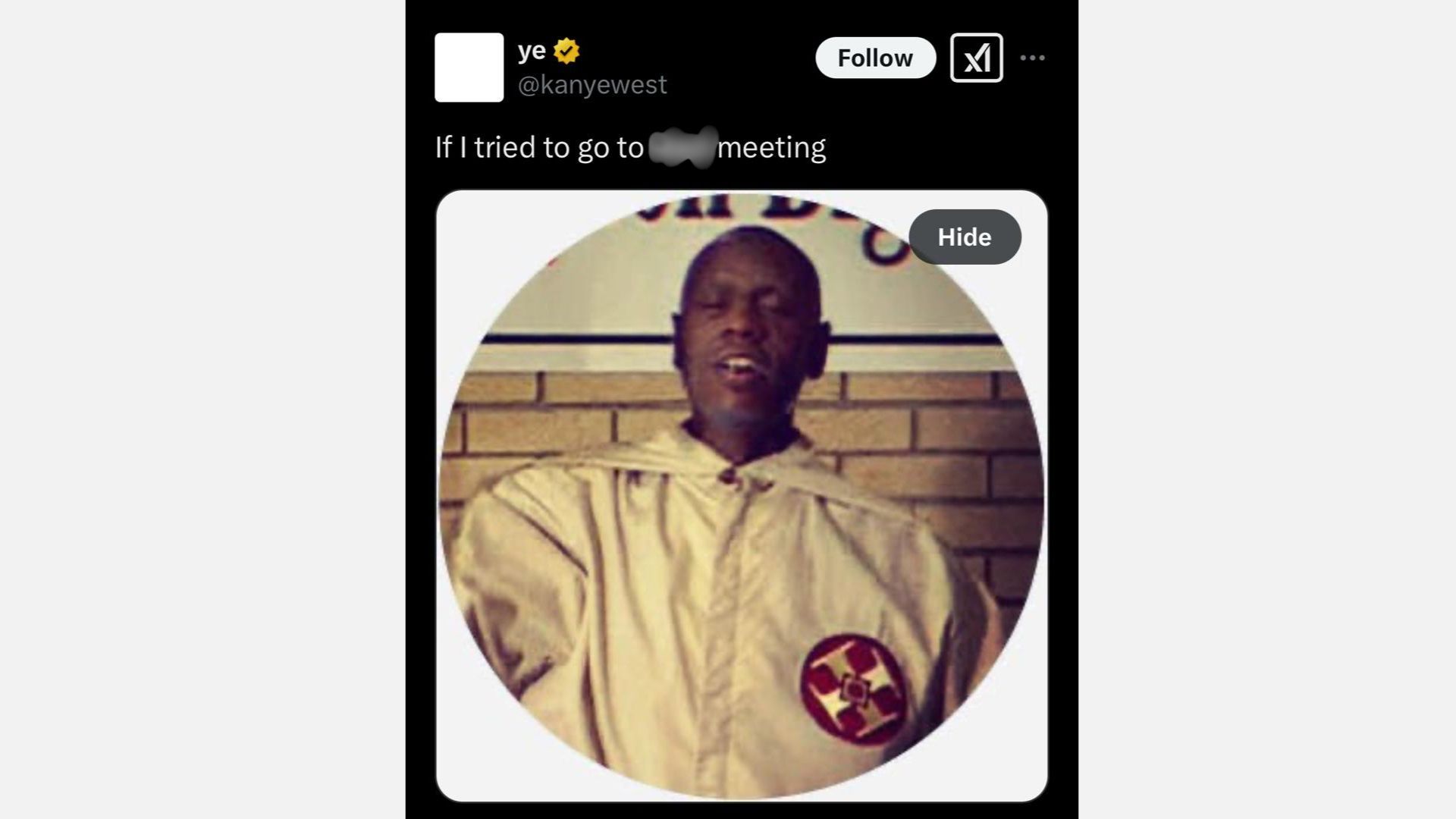 The controversial rapper followed with a tweet that seemed to infer that he was trying but failing to join a N*zi club. His post read: