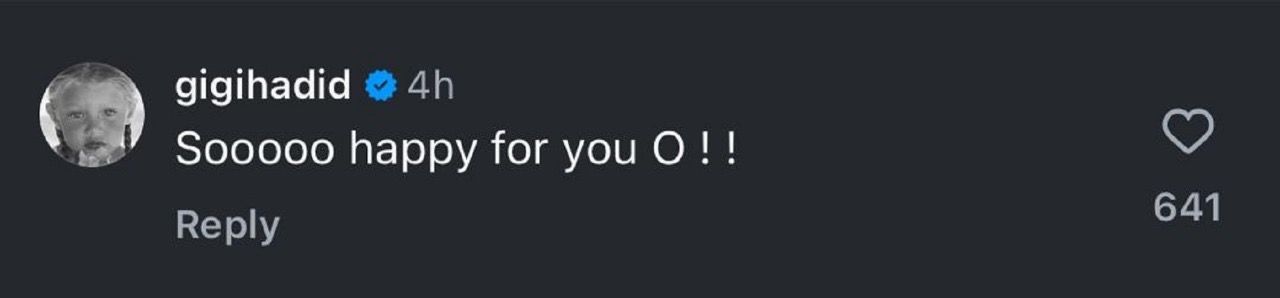 “Sooooo happy for you O!” @Gigihadid expressed.