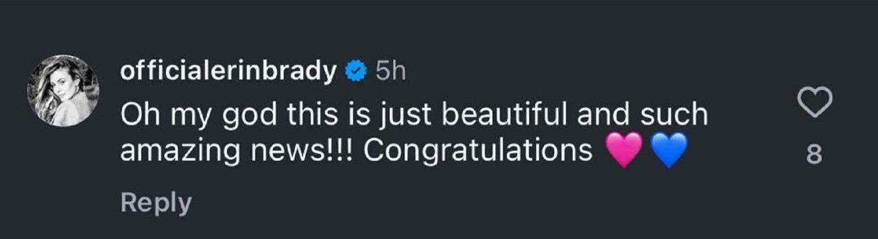 “Oh my god, this is just beautiful and such amazing news!!! Congratulations,” @officialerinbrady congratulated the baby.