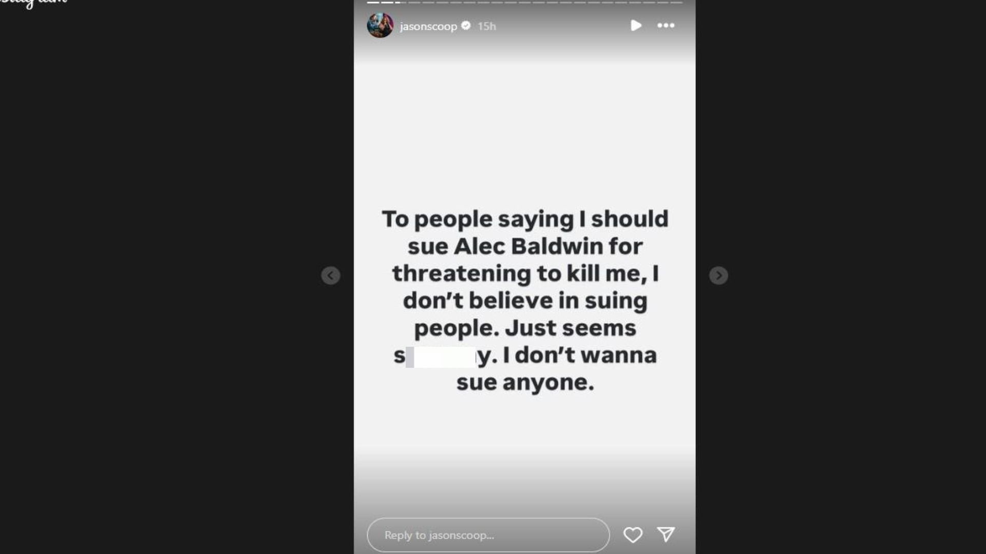 Some users also asked Jason Scoop to sue Baldwin for threatening him, but the comedian refused. Scoop wrote in an Instagram story,