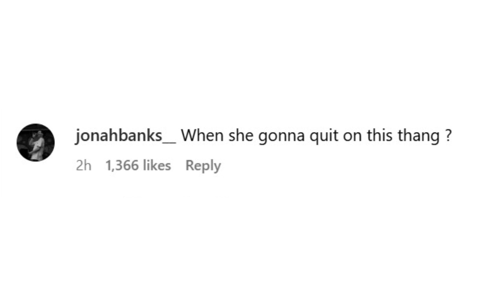 "When she gonna quit on this thang" - @jonahbanks commented.