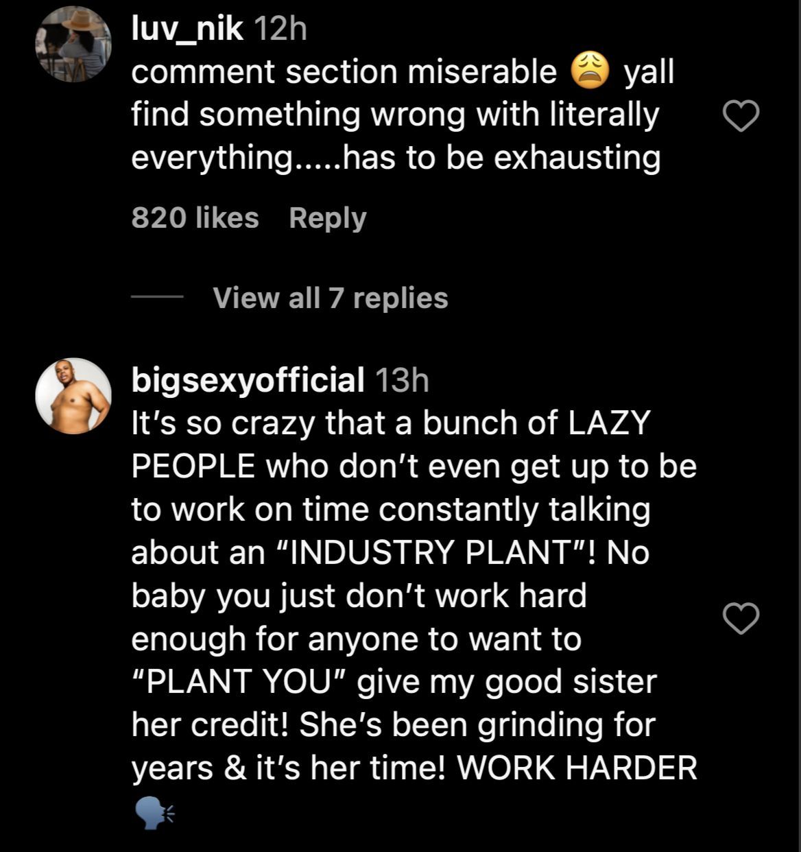 "It’s so crazy that a bunch of LAZY PEOPLE who don’t even get up to be to work on time constantly talking about an “INDUSTRY PLANT”! No baby you just don’t work hard enough for anyone to want to “PLANT YOU” give my good sister her credit! She’s been grinding for years & it’s her time! WORK HARDER🗣," another echoed.