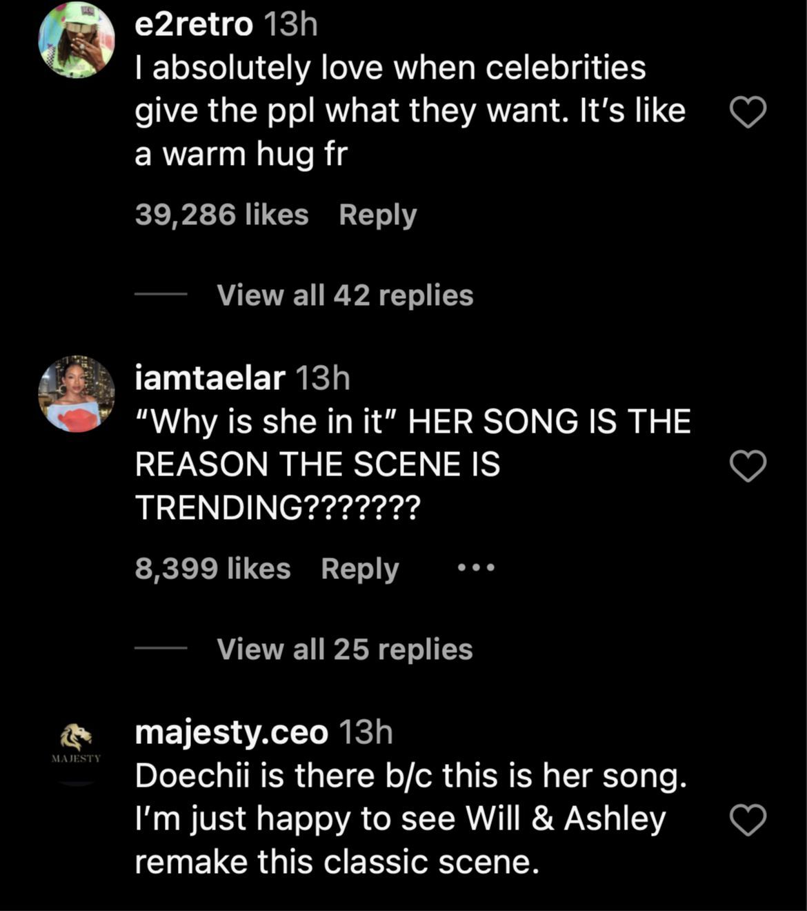 "Doechii is there b/c this is her song. I’m just happy to see Will & Ashley remake this classic scene," someone else noted.