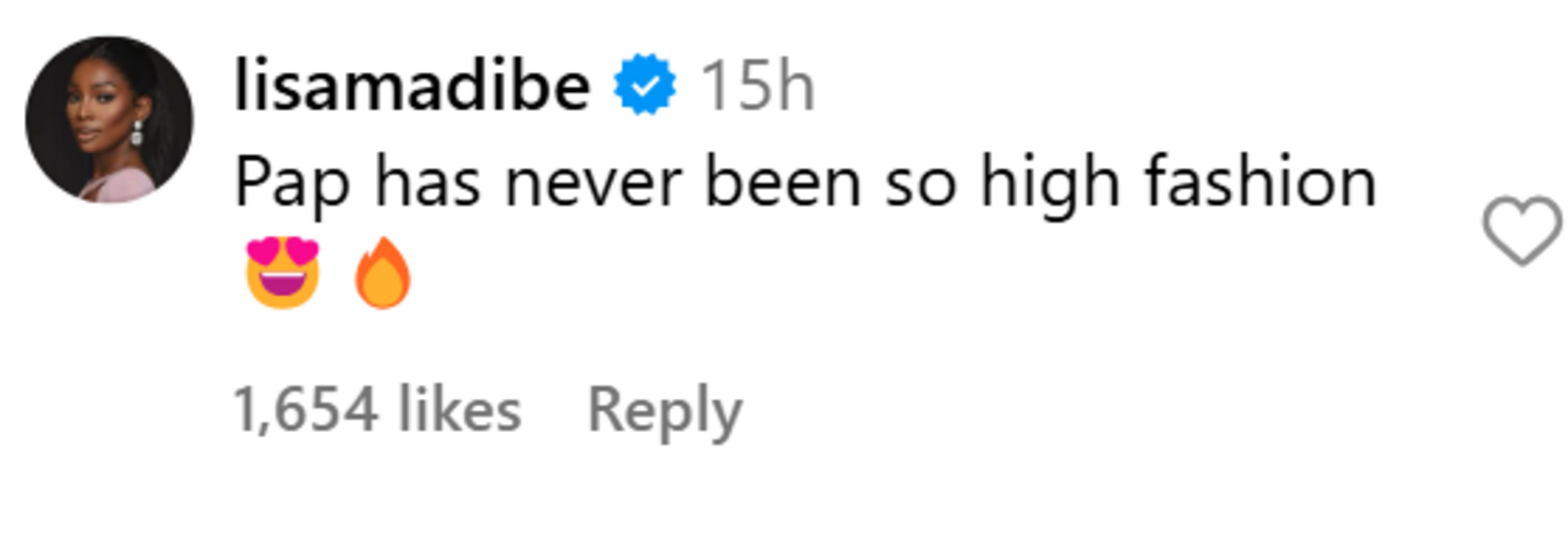 "Pap has never been so high fashion 😍🔥," a user, @lisamadibe, commented.