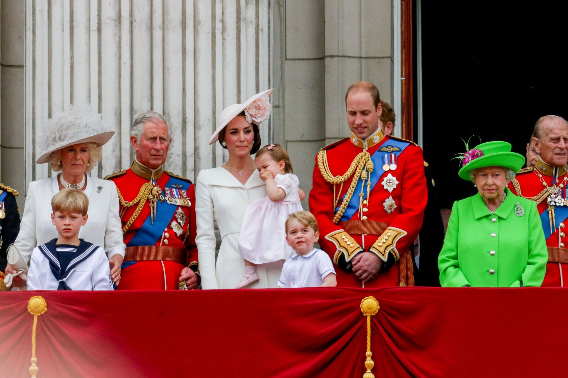 Princess Charlotte made her first appearance on the Buckingham Palace balcony during the Trooping the Colour parade in June 2016, which celebrated Queen Elizabeth II’s official 90th birthday. Held tightly by her mother, Charlotte had just turned 13 months when she made her official debut in public life.