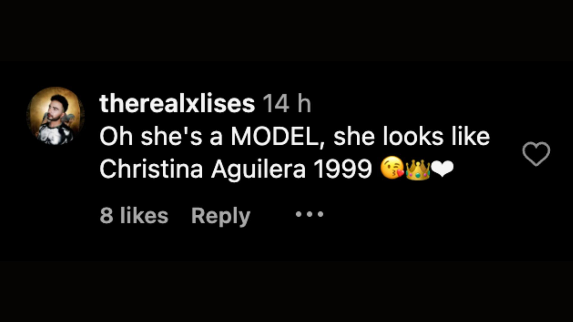 "Oh she's a MODEL, she looks like Christina Aguilera 1999 😘👑❤" - @therealxlises commented.