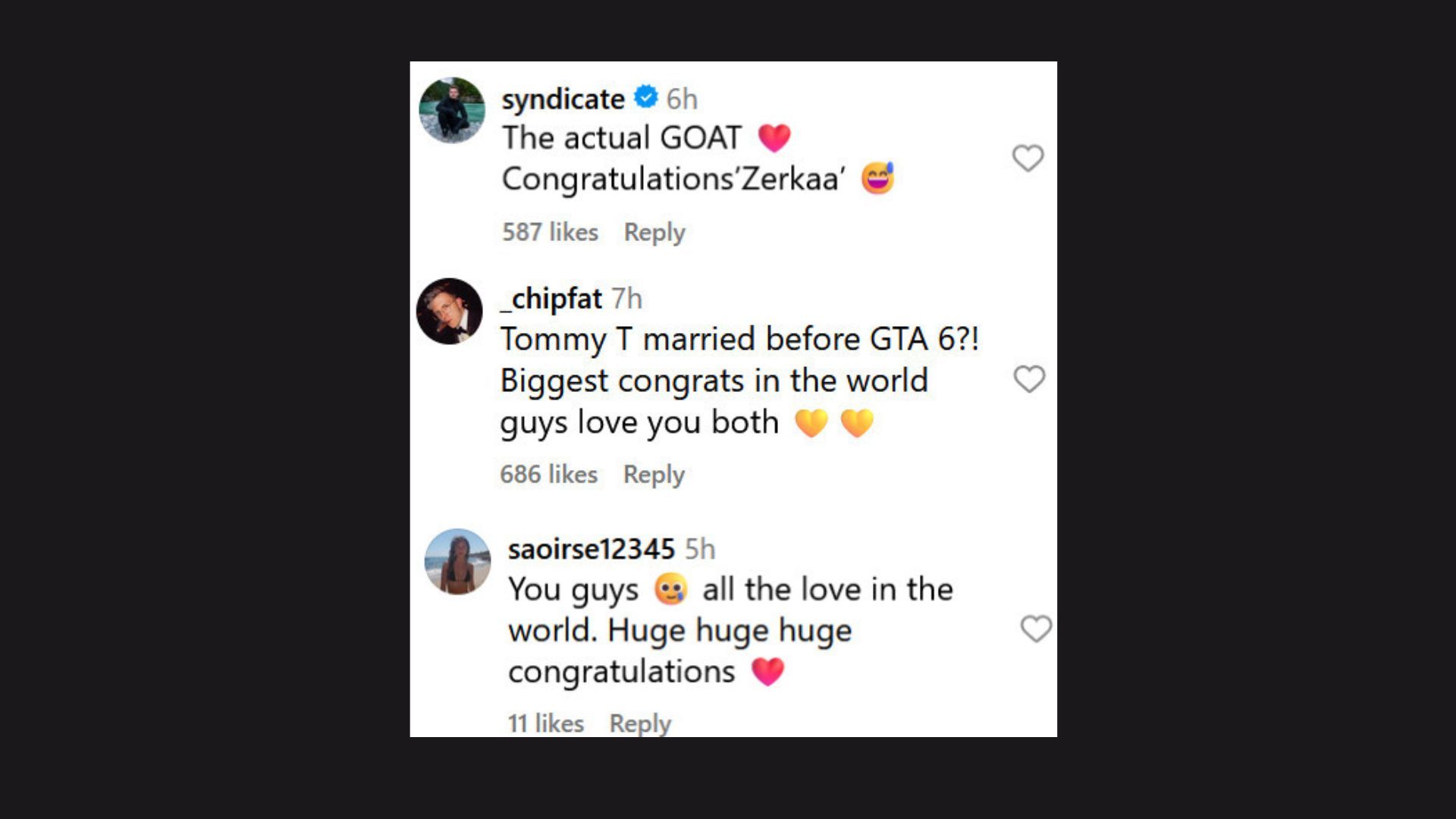 “Tommy T married before GTA 6?! Biggest congrats in the world guys love you both.” Another added.