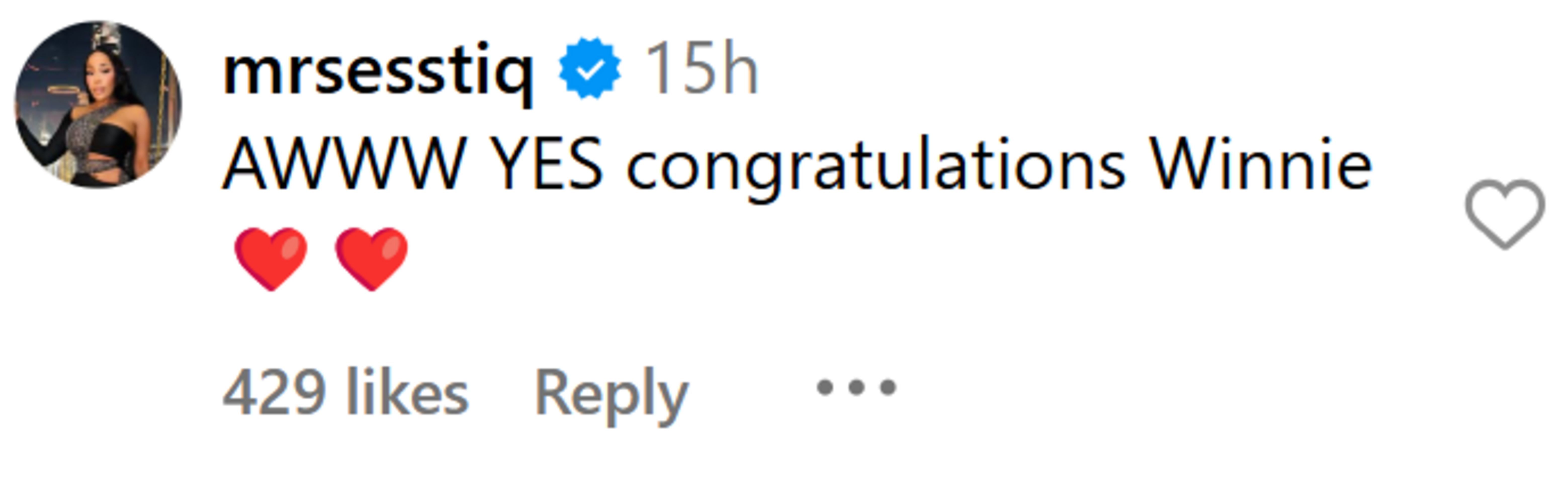 "AWWW YES congratulations Winnie ❤️❤️," CEO of ESSTIQ BEAUTY, @mrsesstiq added.