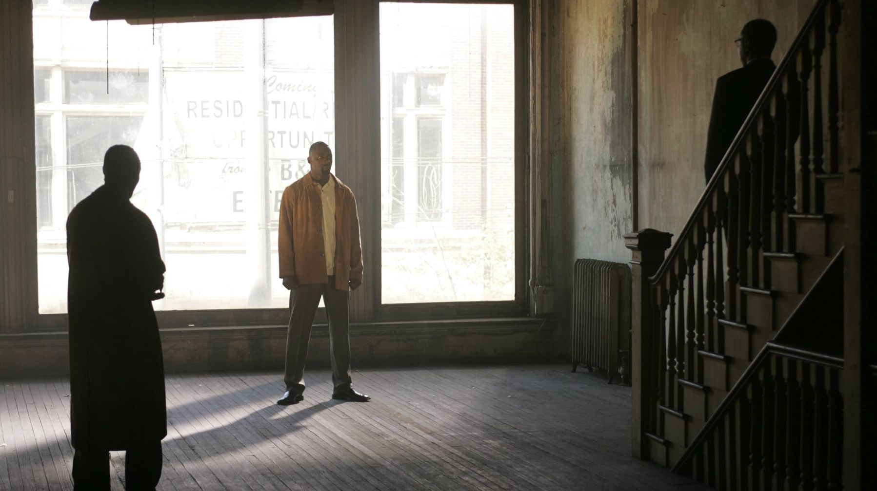 Stringer Bell thought he could buy clean power with street money. He talked to developers and politicians like he was already legit. Avon pulled him back when he could smell the betrayal too close. Omar and Brother Mouzone corner Stringer on that half-built floor.