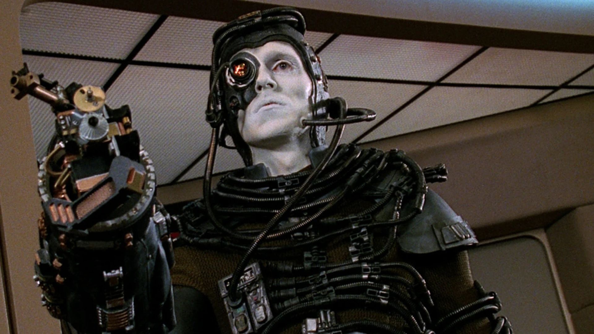 The episode I, Borg, throws you for a loop. So here’s this Borg drone—later named Hugh—who gets pulled away from the Collective and starts acting like a real person. Now, the crew has got a moral crisis on their hands: Should they use Hugh to nuke the entire Borg race (which is a borderline genocide)? Or do they treat him like an actual person and just let him go?
