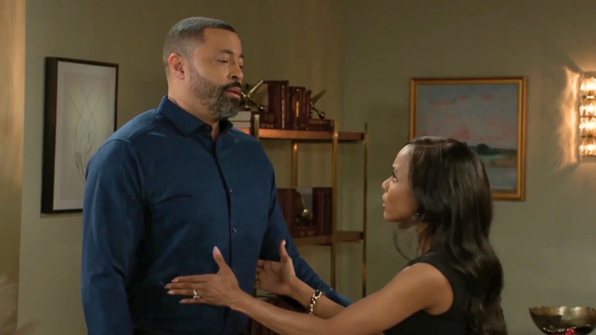 These are not the two most popular words to hear. Andre and Dani (Karla Mosley) are at her place, and Andre tells Dani they need to talk. Dani now looks miffed and asks Andre if she has this correct, and that he means to tell her that her daughter and her niece know that they are sleeping together. Andre is fine with the world knowing that they are seeing each other, but Dani doesn't want that yet. She still wants it to be their secret, and worrying about Nicole (Daphnée Duplaix) finding out has to be at the top of her “oh no” list.