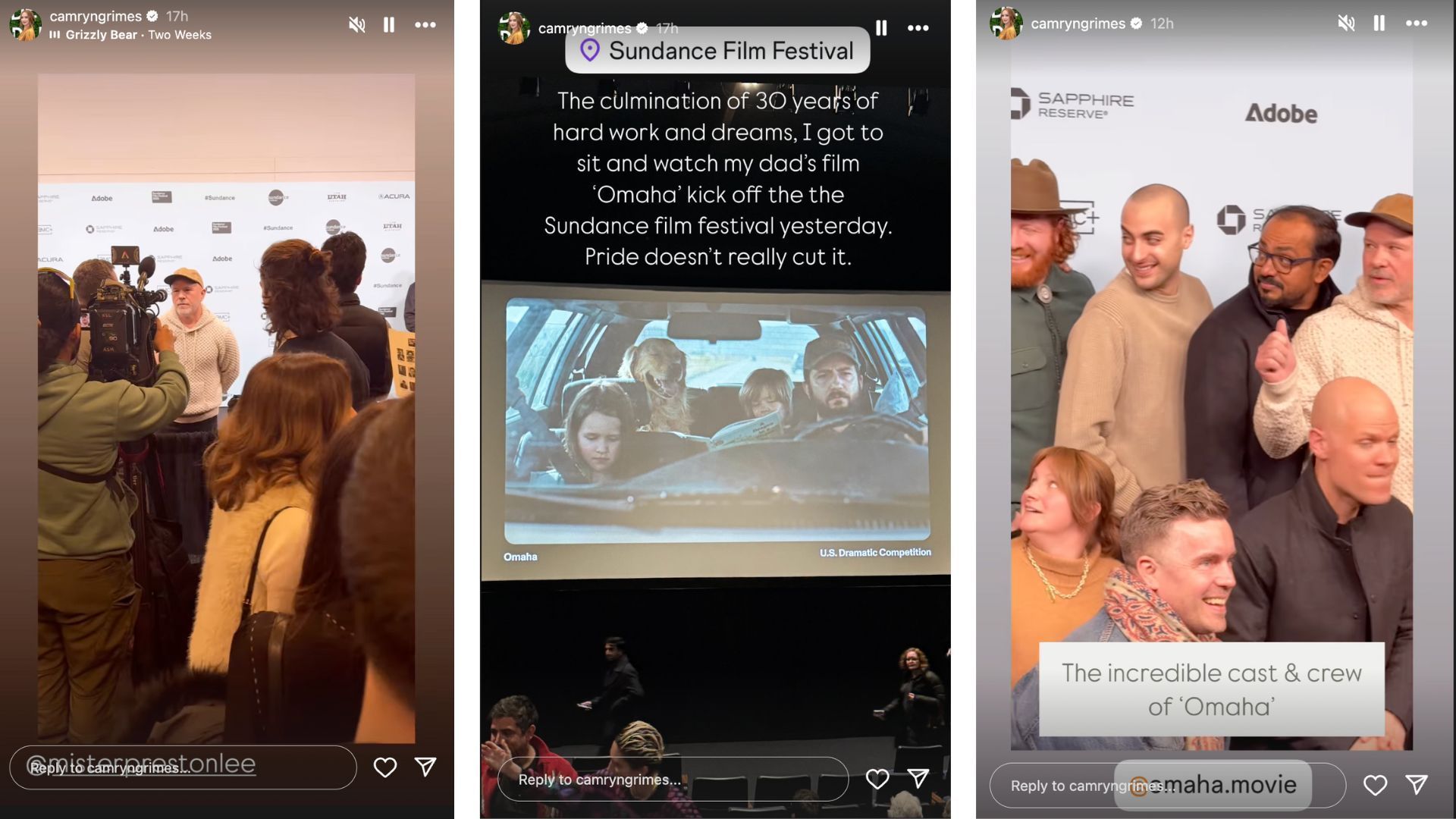 Grimes shared a picture of a scene from the movie and captioned it, “The culmination of 30 years of hard work and dreams. I got to sit and watch my dad’s film ‘Omaha’ kick off the Sundance Film Festival yesterday. Pride doesn’t really cut it.”