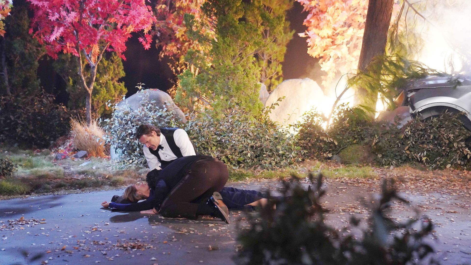 “Slay bells ring. Are you listening? At the ranch, Victor’s bristling. There could be a fright, but Sharon’s happy tonight. Genoa City is a winter wonderland.”