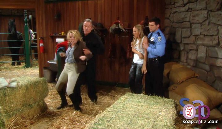 Nikki and Sharon continued to hurl insults at one another, and Victor barked for them to shut up. Nikki instructed the officer to arrest Sharon for assault, and Sharon retorted that she wanted him to arrest Nikki for stealing the horse. The officer declared that they both had the right to press charges, and he placed them both under arrest.