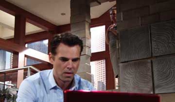After Billy questioned Phyllis, she admitted she'd had a heated exchange with Victoria. Phyllis added, "She tried to shake my faith in what you and I have." Billy assured Phyllis she was the only woman for him. Phyllis told Billy she'd be upstairs, drawing a bath, and would summon him when it was ready. Phyllis watched Billy from the top of the stairs as she used her phone to send herself an email, which sounded a chime on her laptop. Billy slid Phyllis' laptop toward him and typed in Dina's username and password. Phyllis called out and said the tub was ready. Billy quickly turned the laptop back to the position where Phyllis had left it. When Billy met Phyllis at the top of the stairs, he mentioned that her computer had "dinged." Phyllis said that she was ready to play and would deal with business later.