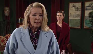 Gloria stopped by the mansion and helped set Jack up to work at home. She gushed that Jabot would thrive under his leadership, but she sensed that something was bothering him. He revealed that his confused mother had interrupted an important video conference. Dina became incensed when she returned to the room and spied Gloria. Dina ranted about being subjected to a tacky gold digger in her home on a daily basis, and Gloria forced a smile and asked how Dina was doing.