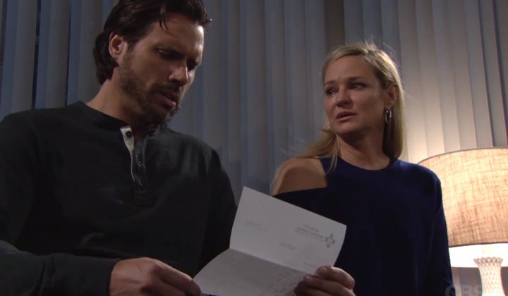 Nick held the envelope containing the DNA test results. He sat down next to Sharon and read the results that confirmed Christian wasn't his son. Nick broke down and sobbed on Sharon's shoulder while she held him.