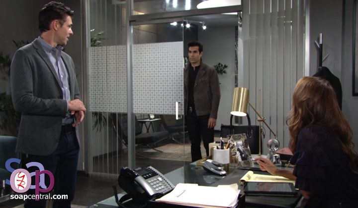 At Chancellor Communications, Lily noticed that Billy wasn't listening to her update on ad sales. She surmised that he was worried about what Michael had said to Rey at the restaurant. Billy conceded that he might be overreacting, since he always made everything about himself. She asked if he was okay, and he replied that he was better than okay. They exchanged smiles.