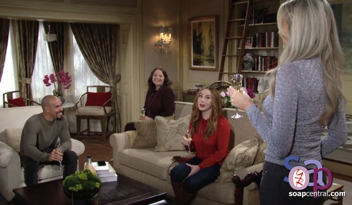 Devon greeted Mariah when she arrived. Mariah was very excited and asked where Abby was. Devon said she'd gone to get a bottle of Champagne. Practically jumping out of her skin, Mariah demanded to know what Abby had decided. Devon smiled and said that Abby had agreed. Abby arrived with the Champagne, and they all drank to baby Chancellor.