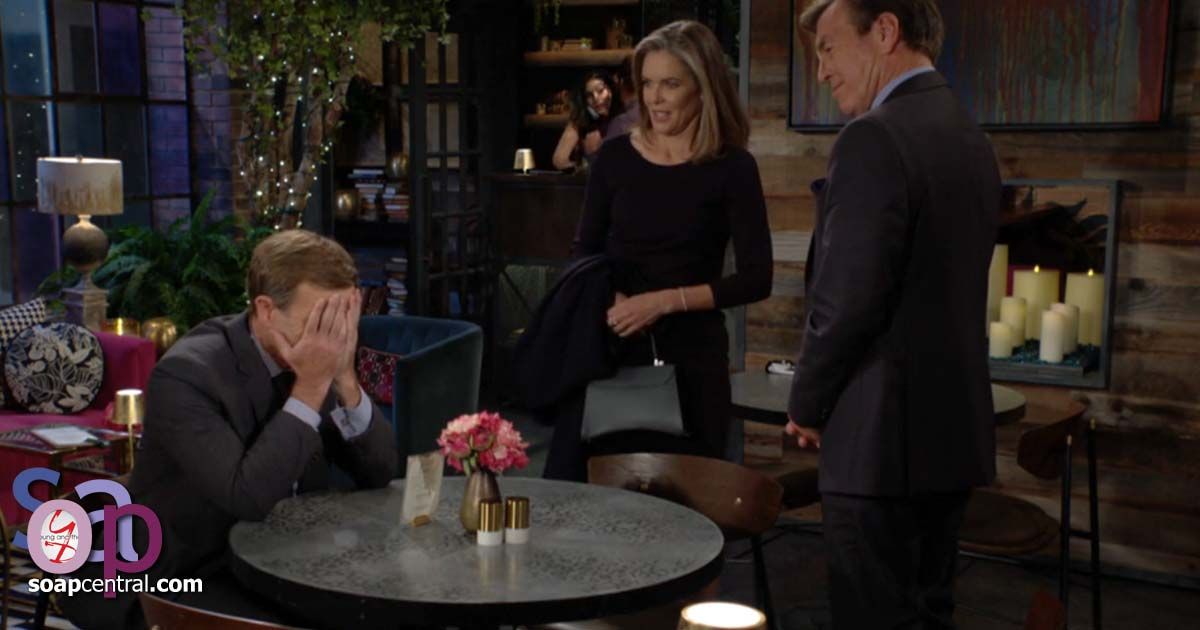 Diane told Jack she'd believed they'd made progress, and she couldn't believe how easily it had become undone. Shouting, Diane said Phyllis had shared some convoluted suspicion about her and Tucker, and Jack was doubting her honesty, again. Jack admitted it had brought up misgivings he'd thought he'd buried. He said perhaps he'd held them in check for Kyle and Harrison's sakes, but his instincts told him he hadn't buried those misgivings.