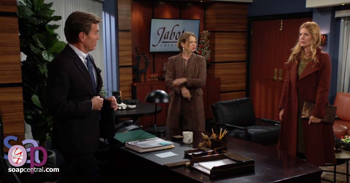 At Jabot, Phyllis told Summer and Jack she needed to talk to both of them. Jack told Phyllis if it was business to talk to Summer, and he wasn't interested in anything else. Phyllis said she'd met with Stark, which had been his request. She said Stark was certain she knew where Diane was, and he'd known she'd been the one who'd called him. She said she kept denying it, but she had made the call. She said she'd wanted to try a new approach, and she'd admitted she'd called Stark. She said she'd told Stark that Diane had gone to the Feds about him. She'd also added that when Jeremy had arrived, Diane had been scared and had left town. She said she'd told Stark he could return to California.