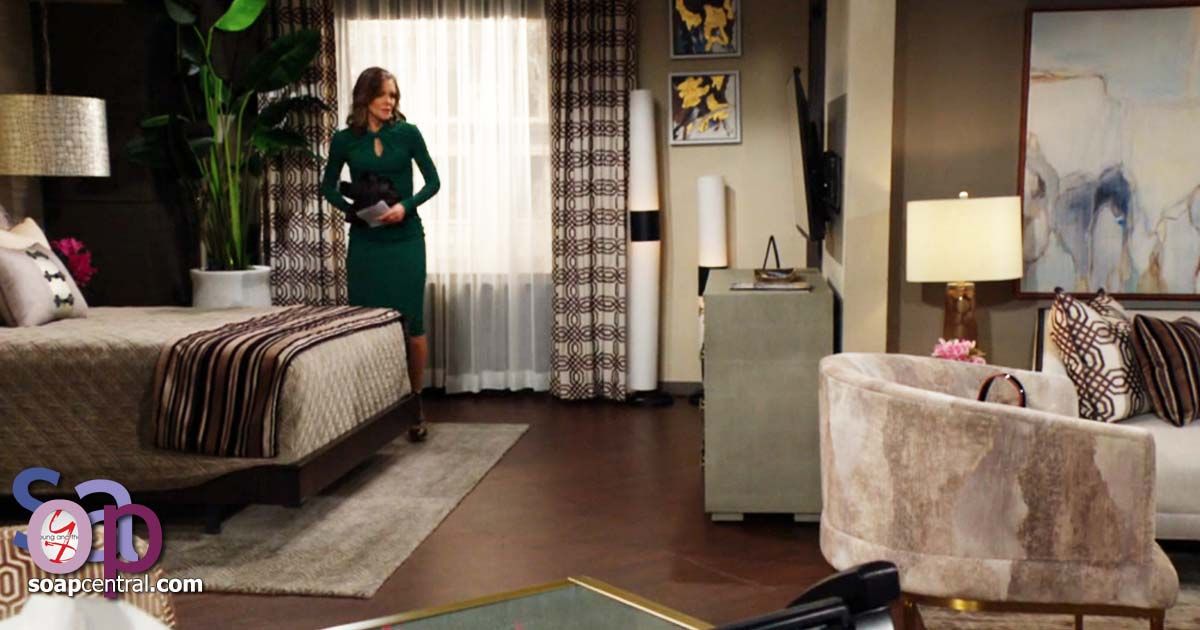 Diane apologized for the disruption in Kyle and Summer's lives, and she promised it would be over soon. Kyle asked how dangerous the plan was, and Jack voiced confidence that they would all emerge unscathed. "Except for Jeremy," Diane added. Summer grumbled that she had to get to work, and she stormed out. Kyle followed her. Diane lamented that it had been the couple's biggest disagreement since they'd moved back from Italy, and she blamed herself. Jack suggested they solve the problem by getting Stark out of Genoa City for good. "Let's take him down!" Diane exclaimed.