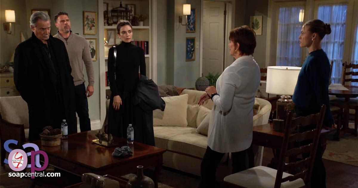 At the Oregon lake house, Victoria reeled as Jordan sat down with a smirk. "What did you call me?" Victoria incredulously asked Claire, who reiterated that she'd referred to Victoria as "Mother." A confused Victoria wondered why. Claire explained that Victoria was big on formalities, so "Mother" seemed appropriate. Claire reasoned that they were way past the "Mama" and "Mommy" phases that Victoria had missed, but "Mom" felt a little too familiar.