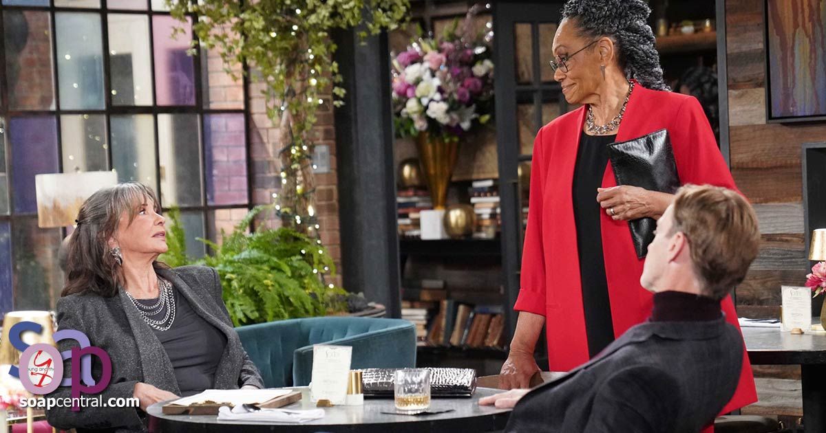 Jill and Billy sat down together at Society. Billy told his mom he'd had no idea she was in town. Jill explained that she had tackled pressing concerns and wanted to visit with her son because they had not had an opportunity to visit during her previous stop in Genoa City. Jill confided that Mamie Johnson was attempting a full-on attack after joining forces with Tucker McCall. Billy asked Jill what Tucker might gain from the alliance. Jill confided that Tucker wanted to acquire Chancellor-Winters while Mamie yearned to have her family run the company.