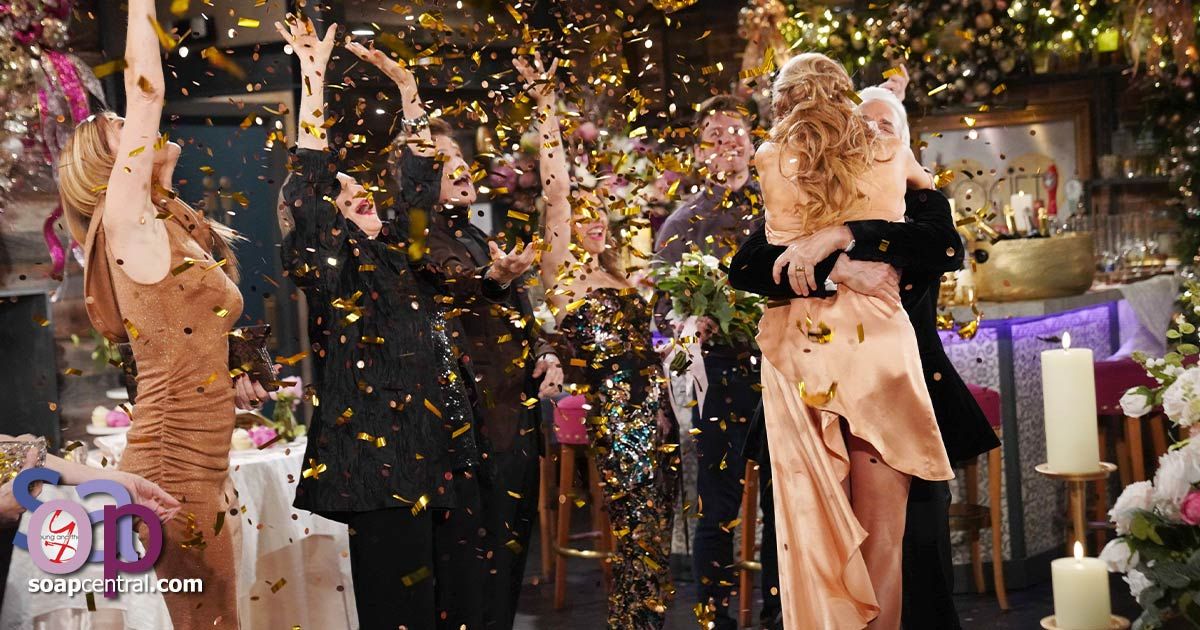At the Athletic Club, Lauren asked Michael why they hadn't thought of renewing their vows on New Year's Eve before. He said he couldn't think of a more perfect way to ring in the New Year. They kissed. Michael toasted Lauren by saying she dazzled him more with every passing year. They saw Phyllis arrive. Lauren reminded Michael that Daniel had wanted them to talk to Phyllis. Michael invited Phyllis to join them.
